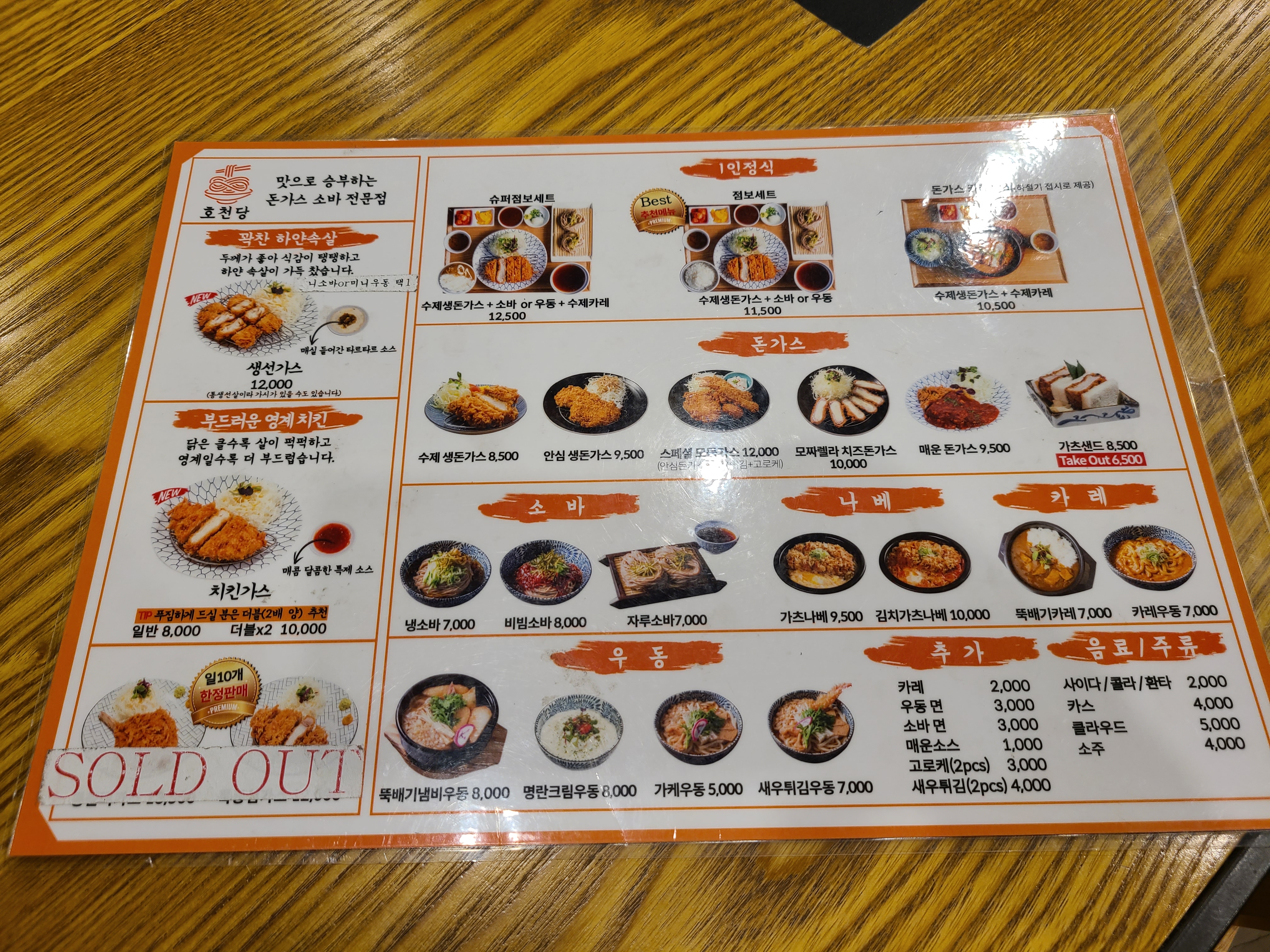 가게 외관에서부터 돈까스, 소바를 먹어봐야겠다 생각 드실거에요. '맛으로 승부하는 돈가스 소바 전문점'이라고 떡하니 쓰여있거든요. 메뉴는 단품, 세트로 구성돼있습니다. 단품으로는 소바, 나베, 돈까스, 우동, 카레 등이 있고요. 세트로는 1인 정식이라고 해서, 슈퍼점보세트(수제생돈가스+소바 혹은 우동+수제카레), 점보세트(수제생돈가스+소바 혹은 우동), 수제생돈가스와 수제카레 세트 이렇게 총 3가지가 있습니다.