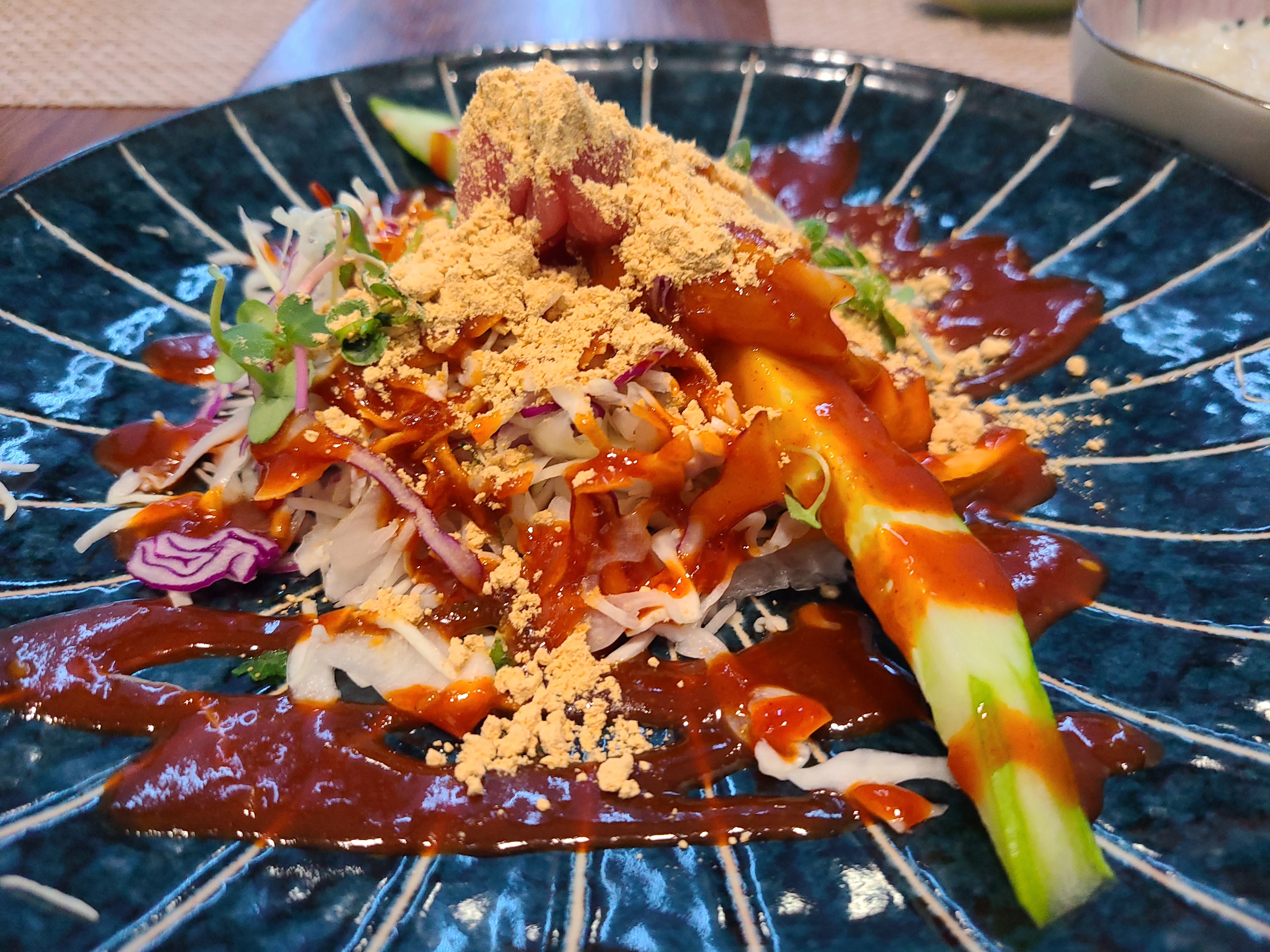 일단 메인 회가 나오기 전 많은 종류 음식이 이미 한상차림을 이루는데요. 저는 그 중에서도 샐러드가 맛있었네요. 양념이 기대 이상으로 상큼해서 정신이 바짝 들더라고요. 입맛을 싹 돋우는데, 에피타이저로는 딱이라는 생각이 들었습니다.