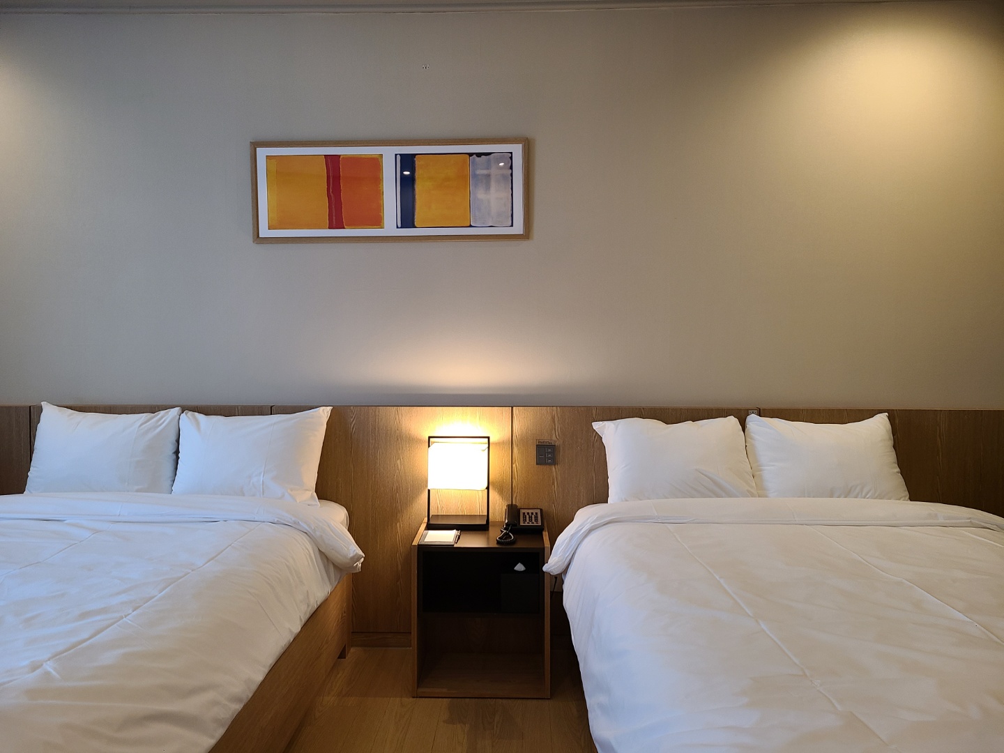 우선 한옥마을뷰와 시티뷰가 있는데, 저는 아쉽게도 시티뷰였어요. 다만 꼭대기층인 9층! 시티뷰였습니다. 일주일 전쯤 예약을 했었는데 2명씩, 2개 베드가 가장 작은 방이었다고 하네요:)