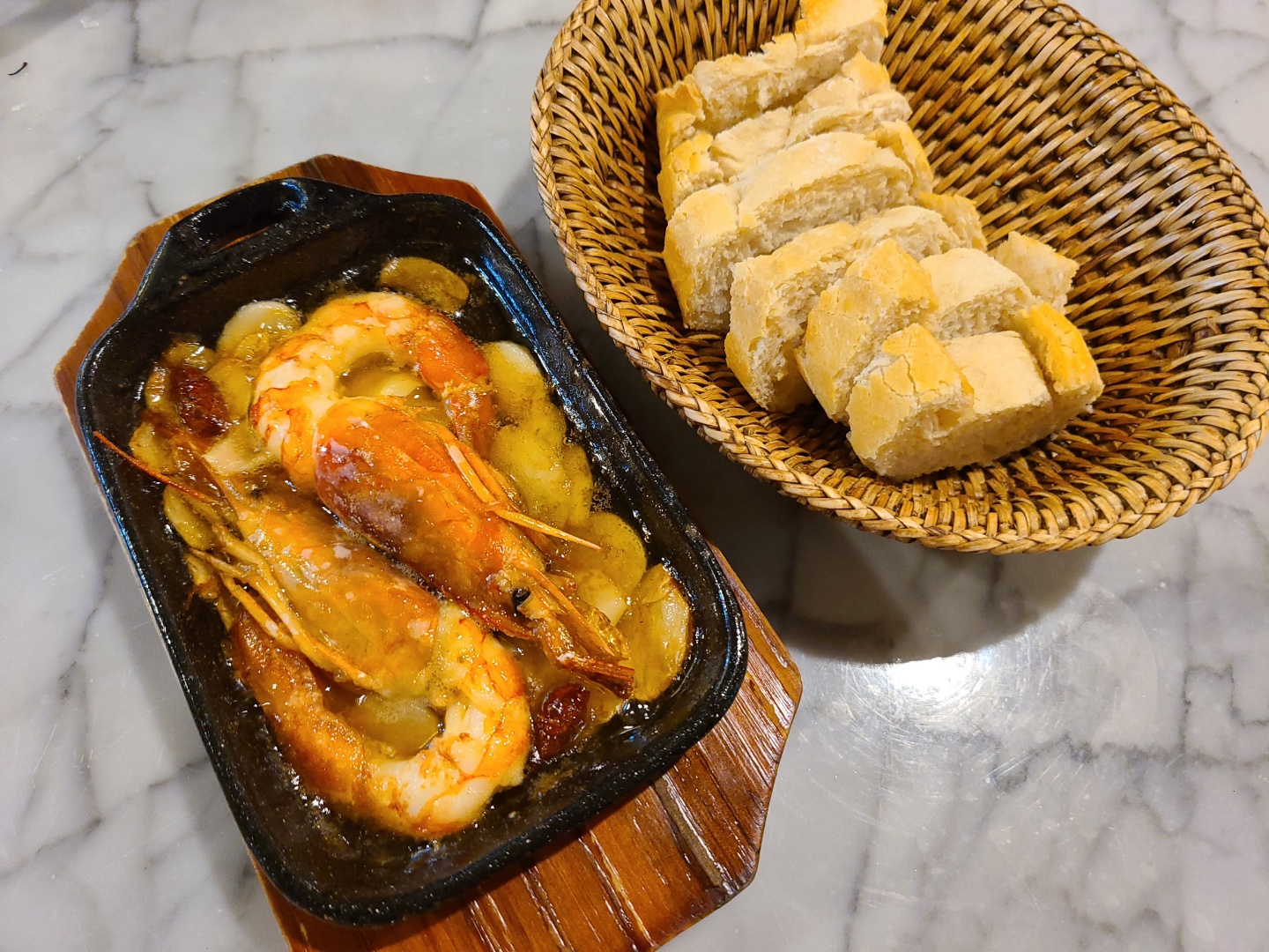 또 하나 추천드릴 메뉴는 가지구이와 버섯 오븐구이예요. 가지는 식감 탓에 싫어하시는 분들 많으시잖아요? 지로나에서 내어주는 가지와 버섯은 오븐에 구워서 식감은 조금 덜하게, 다만 풍미는 그대로 간직했습니다. 아 참, 감바스도 새우가 오동통 실하고 빵도 바삭했어요!