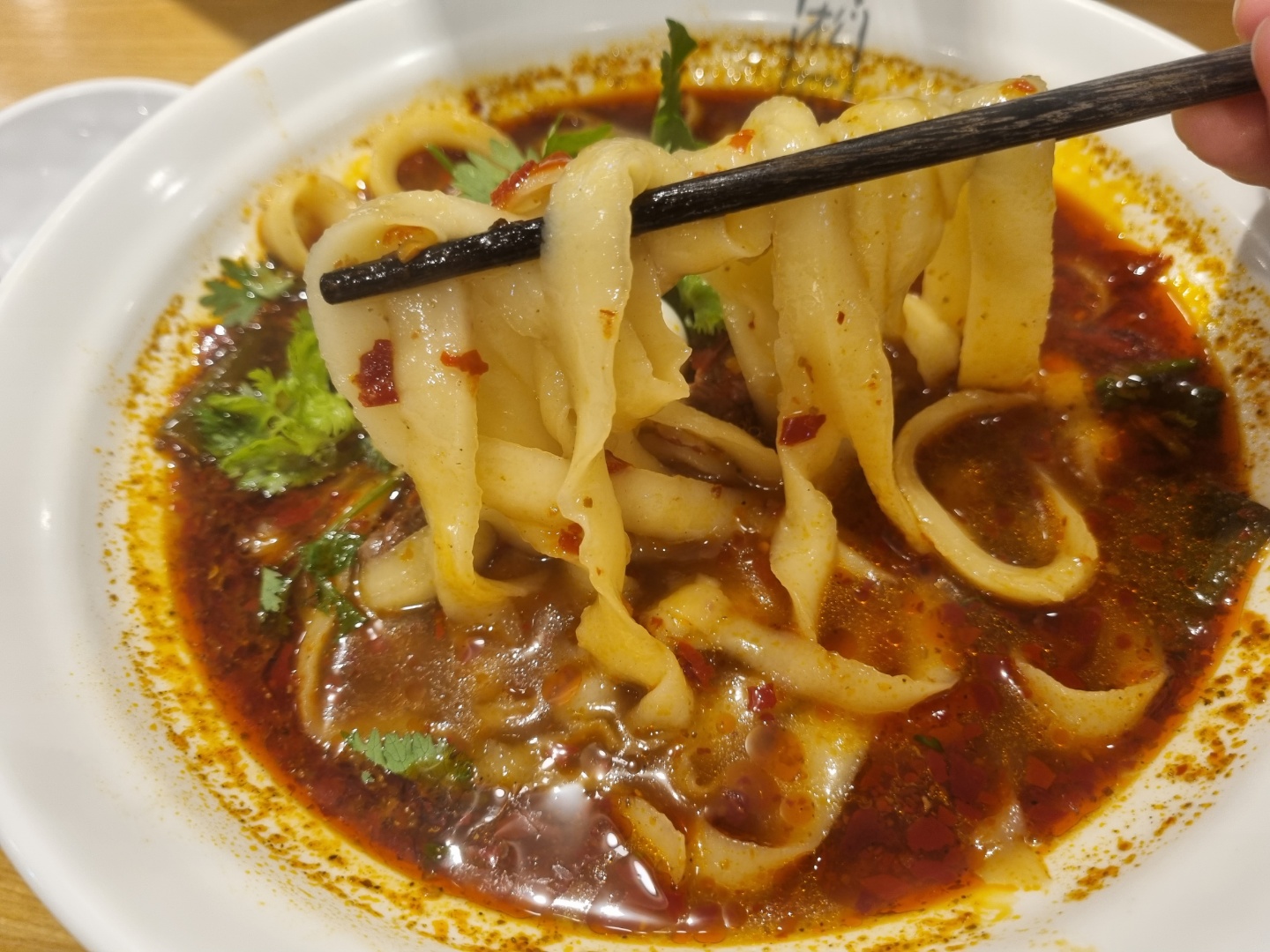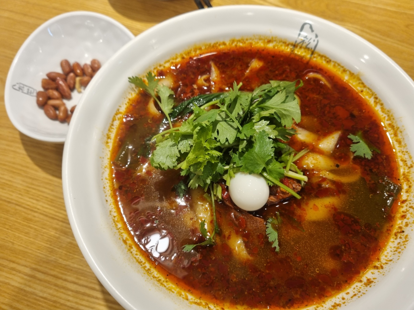 국물 맛도 말로 다 표현 못하지. 마라탕 처럼 고추기름이 보이는데, 또 잘게 찢긴 듯 보이는 고추가 국물에 둥둥, 먹으면 또 씹어먹는 맛이 있더라고.
