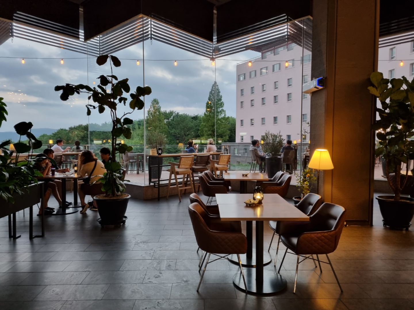 특급 호텔로 분류되는 이곳은 흔히 등산 관련 브랜드로 알려진 '코오롱'에서 운영하는 곳인 듯 했습니다. 그래서인지 호텔 입구 산책로 뷰가 끝내줍니다. 마치 자연 속을 거니는 듯한 느낌이랄까요. 가든 골프장 이용하시는 분들도 많았고 호텔 1층에 골프 관련 용품을 판매하는 공간이 별도 마련돼 있습니다. 여름 때 방문했던 때보다 지금은 골프장 이용객들이 더 많아졌을 듯 합니다.