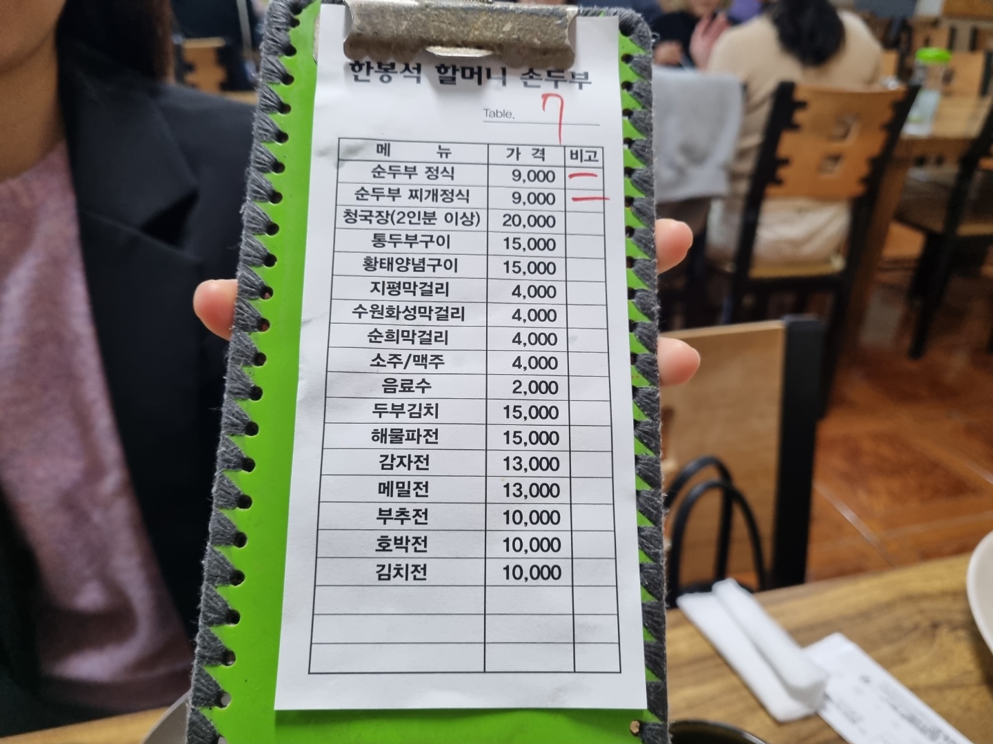 가격도 비교적 저렴한 편인데요. 순두부 정식과 순두부찌개 정식 모두 1인 9천원으로 만원을 넘지 않습니다. 사실 이 정도 반찬 수에 1인 기준 1만원 이하인 식당을 찾는게 쉽지 않잖아요?