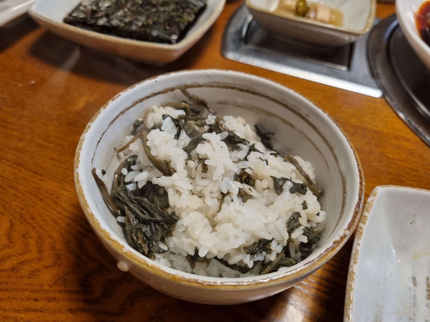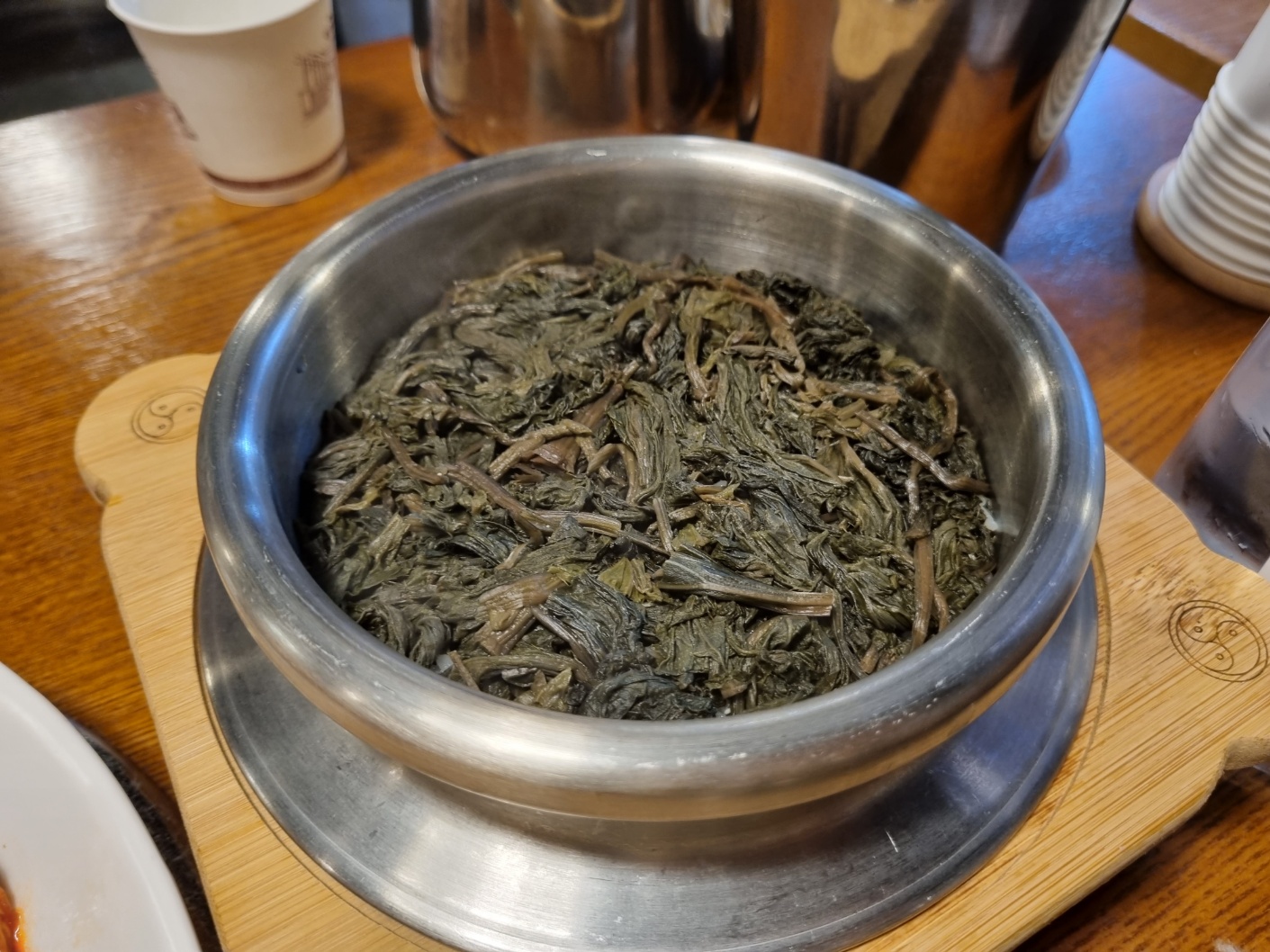 그리고 곤드레밥은 또 얼마나 푸짐한지, 솥 하나가 2인분인가봐요. 딱 공깃밥 두공기가 나오더라고요. 밥을 다 옮겨 담은 뒤에 물을 넣고 만든 누룽지로 입가심까지 싸악- 건강하고 기분좋은 한끼 식사였어요.